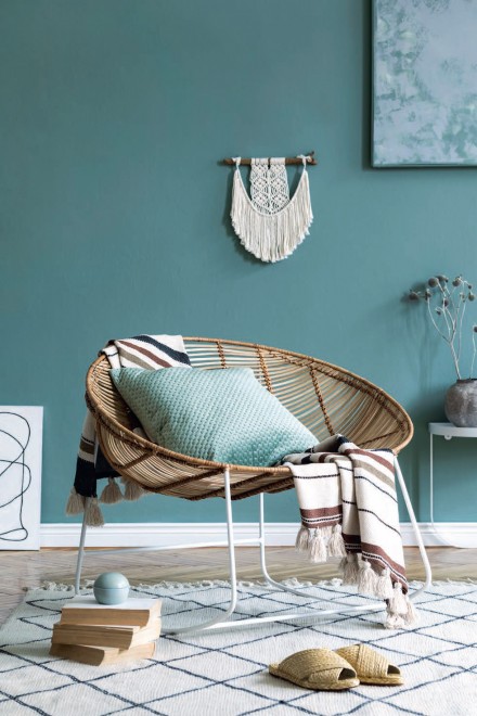 Boho to styl niedrogi i bez zadęcia. Wystrój mieszkania w tej konwencji bez trudu zapewnimy samodzielnie, wykonując dekoracyjne dodatki do stylizacji. Do takich należą np. plecione makramy – instrukcje krok po kroku znajdziemy w internecie. Płaskie donice czy szklane słoje pełne sukulentów to także łatwa w przygotowaniu ozdoba. Muszle, kamienie, egzotyczne nasiona możemy przywieźć ze zbliżających się właśnie wakacji.
