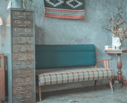 W boho bardzo dobrze wyglądają meble i akcesoria nie z pierwszej ręki. Pośród nowych estetycznych elementów wyposażenia warto zaprezentować coś nadgryzionego zębem czasu. Szczególnie efektownie odnajdą się w takim wydaniu meble orientalne albo ludowe. W towarzystwie tradycyjnych mebli mogą ciekawie „zagrać” również stare przedmioty gospodarskie, nietraktowane dotąd jako wyposażenie wnętrza, np. kołowrotki, beczki czy skrzynie.