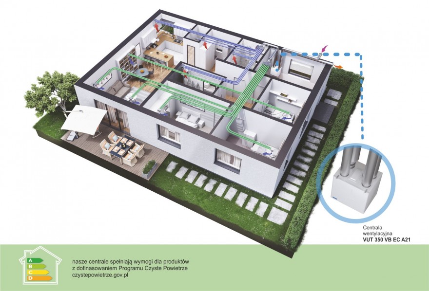 Warto tutaj pochylić się nad zastosowaniem wentylacji mechanicznej. Jest to rozwiązanie, które niesie za sobą wiele zalet. Główną z nich jest aspekt finansowy. Wykorzystanie wentylacji mechanicznej z rekuperacją może nam pozwolić na oszczędności rzędu 30% poniesionych kosztów z tytułu ogrzewania budynków. Ogrzane już w pomieszczeniu powietrze nie jest usuwane przez otwarcie okien, tylko wykorzystane do podgrzania świeżego nawiewanego powietrza.