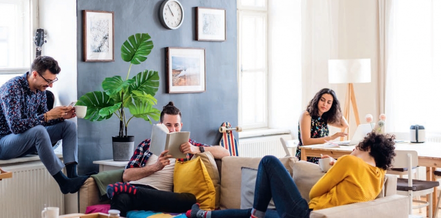 Na naszym rynku najmu pojawiają się już duże mieszkania podzielone na kilka minikawalerek. Każda osoba wynajmująca lokal w takim mieszkaniu ma własną łazienkę, a w pokoju jest zazwyczaj mały aneks kuchenny. Taki układ przestrzenny daje gwarancję niezależności mieszkańcom, jedynie wejście z klatki schodowej najczęściej jest jedno. Takie oferty nadal są jednak bardzo rzadkie, bo przygotowanie do wynajmu mieszkania w ten sposób wiąże się z ogromną inwestycją. W większości przypadków w ofercie są pojedyncze pokoje w dużym mieszkaniu. Gdy kuchnia jest osobna, największy pokój może być wynajęty np. dwóm osobom, a wspólnym, przeznaczonym do użytkowania przez wszystkich miejscem pozostaje tylko kuchnia. Inaczej jest, gdy największy pokój w mieszkaniu jest połączony z aneksem kuchennym – wówczas cała taka strefa może być oddana do wspólnego użytkowania. W jednym i drugim przypadku do wynajmu trzeba odpowiednio przygotować zarówno przestrzeń wspólną, z której będą korzystali wszyscy lokatorzy, jak i ich prywatne pokoje. Kuchnia powinna być urządzona w taki sposób, aby mogły ją bezkonfliktowo użytkować osoby prowadzące osobne gospodarstwa domowe. Na pewno warto umieścić w niej więcej szafek i dobrze, by każda z nich była zamykana. Lodówka, tylko jeśli będzie odpowiednio duża, umożliwi wygodne korzystanie wszystkim lokatorom. Jednocześnie należy w kuchni zaplanować takie rozłożenie mebli i sprzętów, aby zapewnić jak najwięcej miejsca na blatach roboczych oraz możliwie dużo wolnej przestrzeni. Warto pamiętać, że w wielu sytuacjach najemcy będą tam przebywać wspólnie. Idealnie byłoby, gdyby oprócz kuchni była nawet niewielka strefa dzienna, gdzie warto umieścić np. TV czy większy stół z krzesłami. Należy też dobrze przemyśleć aranżację przedpokoju, w którym najemcy będą się często mijać. Usunięcie zbędnych mebli z pewnością powiększy przestrzeń ciągu komunikacyjnego, ale jeśli osobiste pokoje są małe, przydadzą się dodatkowe szafki do przechowywania np. butów czy wierzchniej odzieży. Podłoga w korytarzu i kuchni powinna być wyłożona materiałem łatwym do utrzymania w czystości. W standardowym układzie mieszkania najważniejszą wspólną częścią jest strefa higieniczna – łazienka oraz WC, jeśli jest osobne miejsce, żeby je wydzielić. Dobrze, aby w łazience każdy miał indywidualne wieszaki na ręczniki i przynajmniej jedną półkę na własne przybory. Ze względów higienicznych wskazany jest prysznic, a nie wanna. Konieczne może być wyposażenie łazienki nie tylko w pralkę, ale również suszarkę mechaniczną.